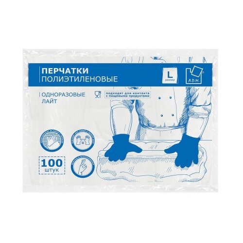 Благодатный мир Перчатки полиэтиленовые одноразовые, размер L,100 шт в упаковке