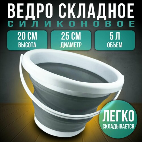 Ведро складное силиконовое 5 литров Универсальное для дома для дачи для рыбалки