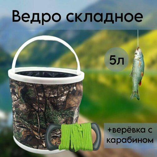Ведро складное 5л, для дома и дачи, рыбалки и туризма + веревка с карабином