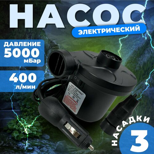 Насос для матраса и лодок с насадками (Портативный) Электрический CZ-168D 400л в минуту