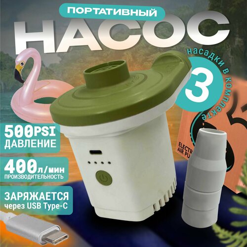 Насос для матраса и лодок с насадками (Портативный) Электрический CZ-666А 400л в минуту