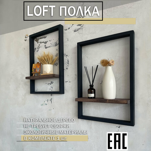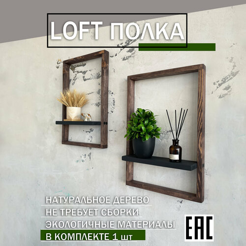 Интерьерная полка в рамке настенная черный-сосна