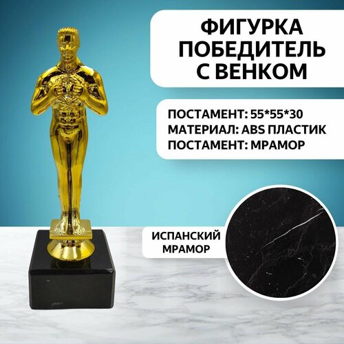 Фигурка победитель с венком Оскар 170 мм, на постаменте из испанского мрамора Boketto Art & Love