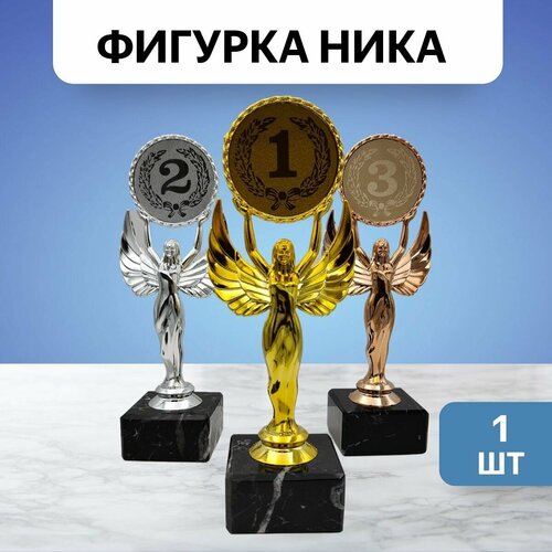 Комплект фигурок Ника с эмблемоносителем 200 мм, 1,2,3 место на постаменте из испанского мрамора Boketto Art & Love