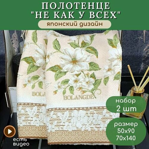 Набор махровых полотенец для ванной, банное и для лица и рук, BOLANGDE, 100% хлопок, Япония Жасмин 70х140 и 50х90, бежевый 2 штуки