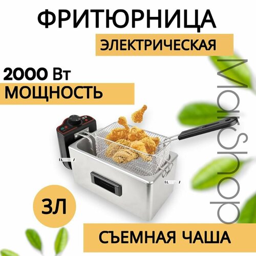 Электрическая фритюрница, быстрый нагрев до 200, объем 3 л, фритюрница со съемной корзиной