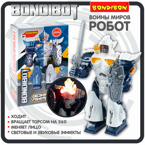 Робот воины миров, BONDIBOT Bondibon , свет, звук, движение, смена лица, ВOX 29,5х18,8х8см, цвет бе