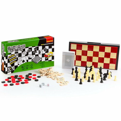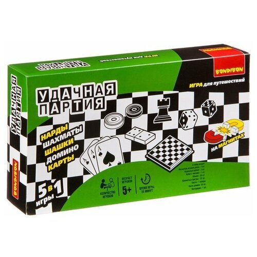 Bondibon Магнитные игры Удачная партия 5 в 1: Шашки, Шахматы, Нарды, Домино, Карты ВВ0683