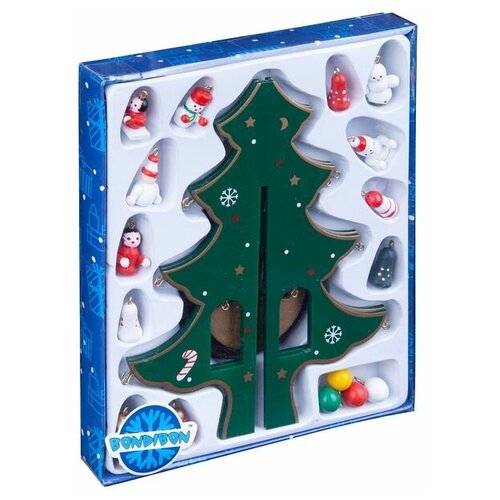Bondibon Деревянная елочка-календарь 3D с игрушками "Деревянная елочка-календарь 3D с игрушками"
