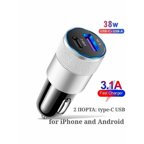 Автомобильное зарядное usb type-c быстрая зарядка 3.1A 38w / В прикуриватель 2 юсб