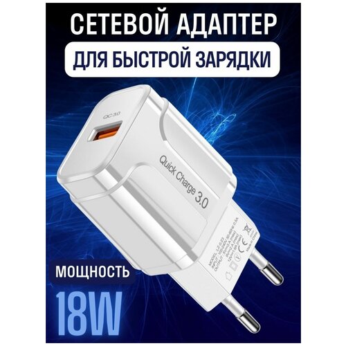 Зарядное устройство для телефона 18W Quick-Charge 3.0, Блок питания USB Type-A / Адаптер Быстрая зарядка