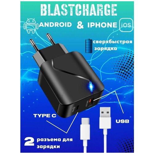 Зарядное устройство USB, Type-C PD 20W для телефона / Aдаптер QC-3.0 20В на android и iPhone / универсальная быстрая зарядка с 2 ЮЗБ для смартфона