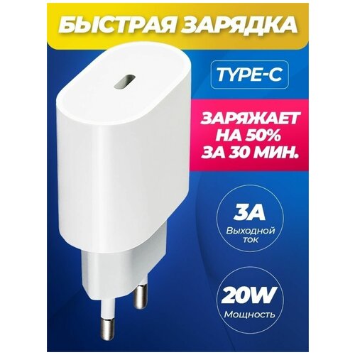 Зарядное устройство на смартфон 20В с кабелем lighting / Блок питания Power Delivery быстрая зарядка для телефона планшета выход type-c 20W iPhone