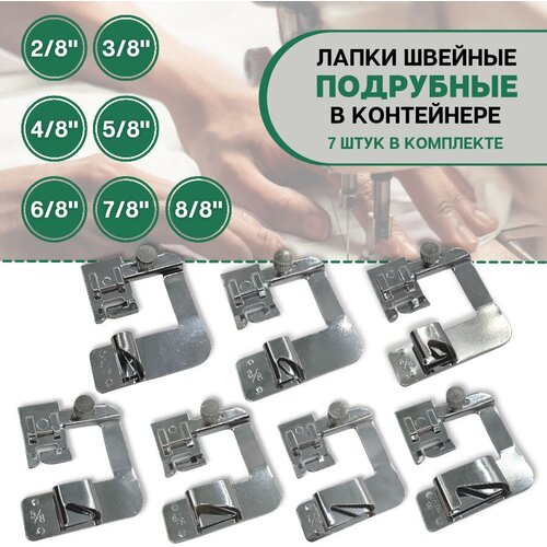 Универсальный набор подрубочных лапок для швейных машин, для подгибки края, 7 штук