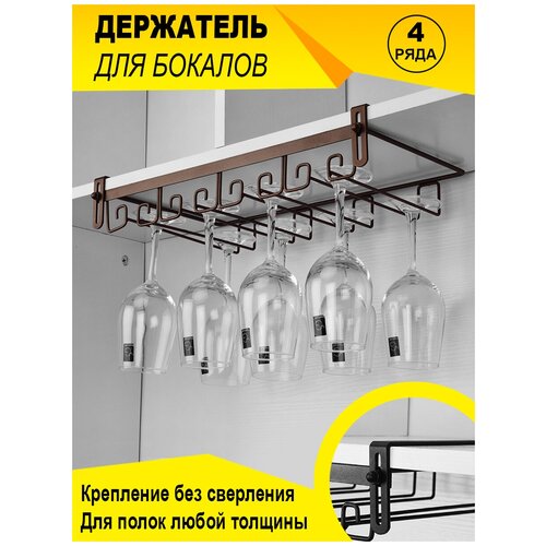 Держатель кухонный для бокалов подвесной, барный, для винных фужеров, 4 рядный бокалодержатель