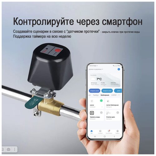 Умный электропривод-клапан на шаровой кран Tuya WiFi для перекрытия воды и газа. Работает с Алисой