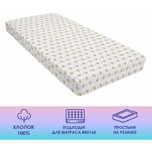 Простыня на резинке 80х160 / натяжная простыня /хлопок / поплин / детям /
