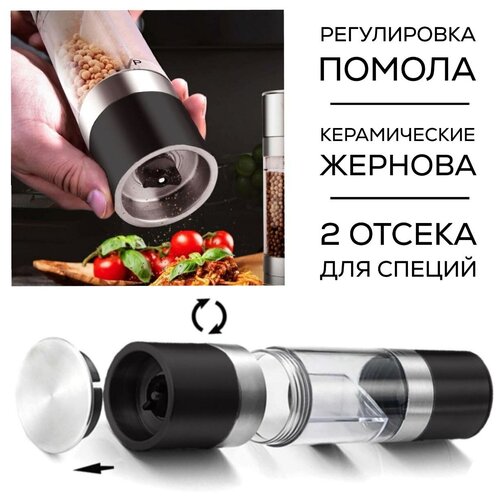 BRIZZOLY/Мельница для специй ручная механическая, два отсека, перцемолка, мельница для соли вертикаль