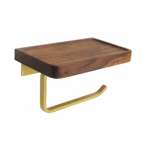 Держатель туалетной бумаги с деревянной полочкой матовое золото BRONZE DE LUXE Forest 10705G