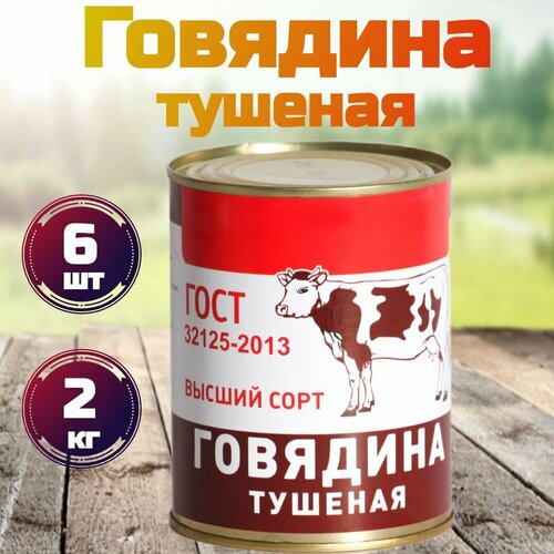 Тушенка говяжья 6 банок по 338гр Высший Сорт ГОСТ, мясо говядины, мясные консервы