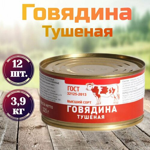 Тушенка говядина 12 шт-325гр, Высший Сорт ГОСТ Говяжья Консервы мясные