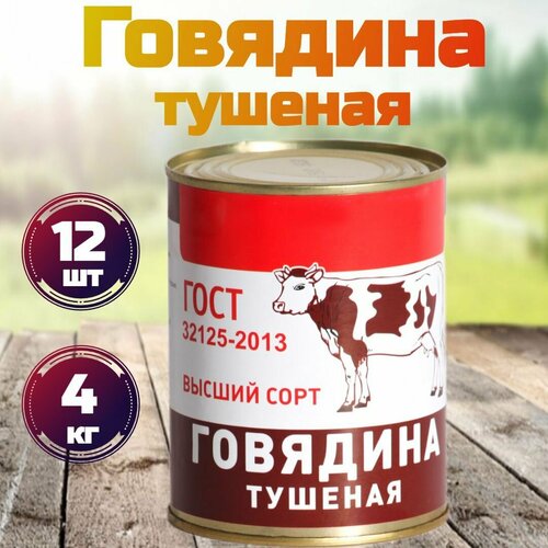 Тушенка говяжья 12 шт-338гр, Высший Сорт, ГОСТ, мясо говядины, мясные консервы