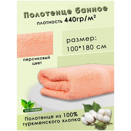 Полотенце банное 100х180 см, Хлопок 100%. Цвет персиковый