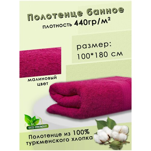 Полотенце банное 100х180 см, Хлопок 100%. Цвет малиновый