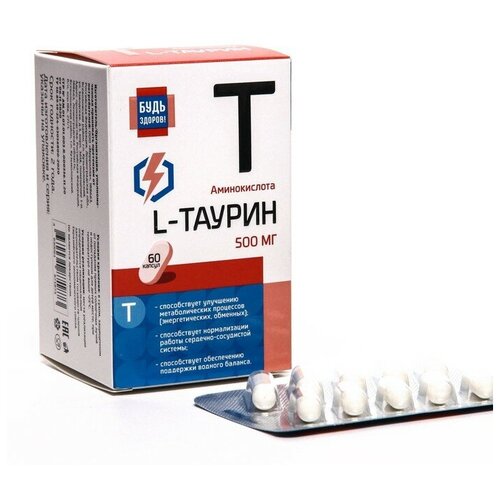 L-Таурин Будь Здоров!, 60 капсул по 500 мг 100045680168