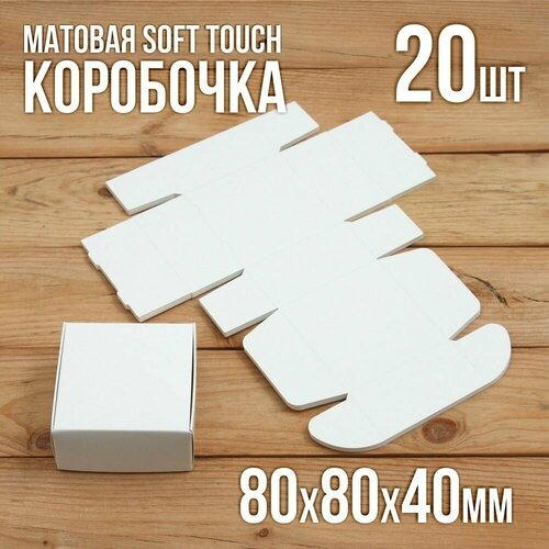 Матовая софт-тач подарочная коробка 80х80х40 мм картонная белая самосборная 20 шт.