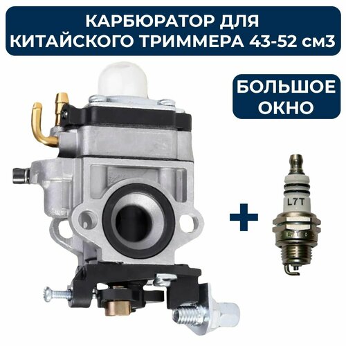 Карбюратор для триммера /мотокосы 43-52 см3 (большое отверстие) + свеча зажигания
