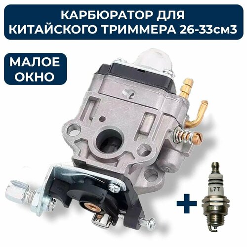 Карбюратор для китайского триммера/мотокосы 26/33см3/куб. см малое отверстие + свеча зажигания