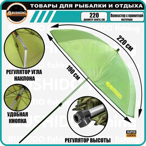 Зонт рыболовный BUSHIDO (d - 2,2m); регулируется уровень высоты и угол наклона