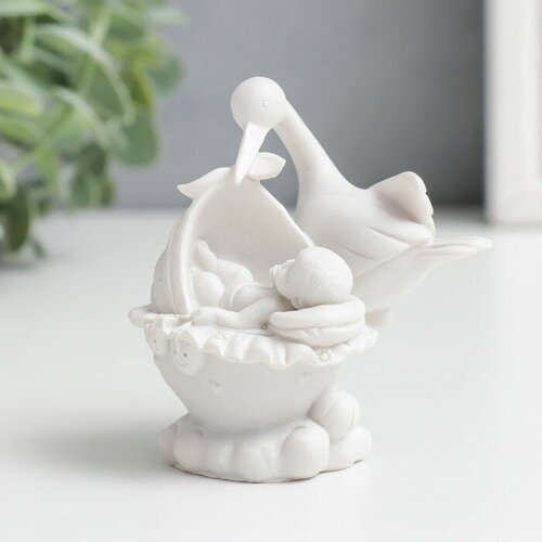 Фигурка полистоун "Аист с малышом" 7,5х5х6,2 см