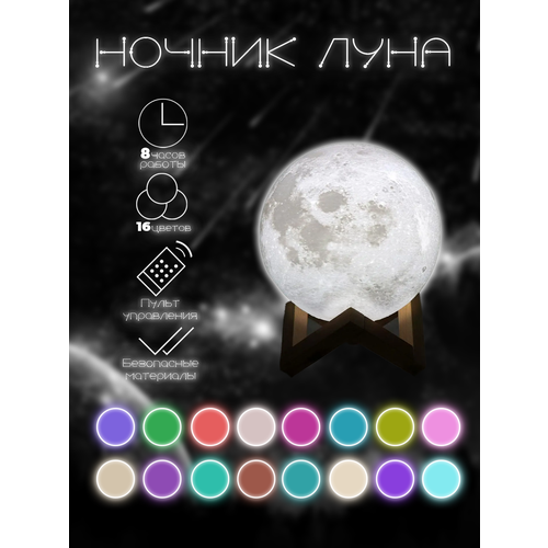 Ночник детский звездное небо галактика светильник шар луна без пульта холодный свет 15 см