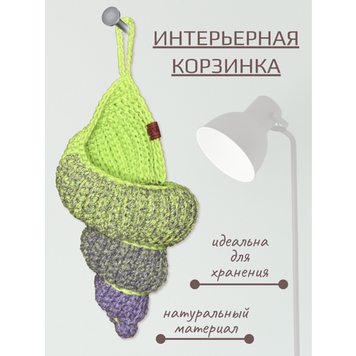Вязаная корзина для хранения BWB в форме ракушки, серый-салатовый, 24 см
