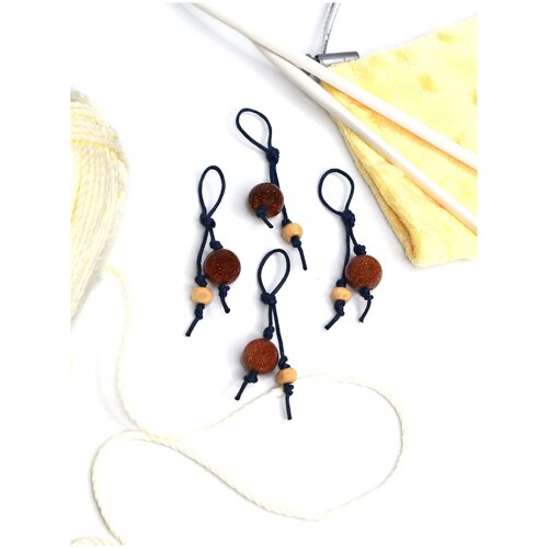 Набор маркеров для вязания вишенки с коричневым авантюрином в подарочном мешочке.