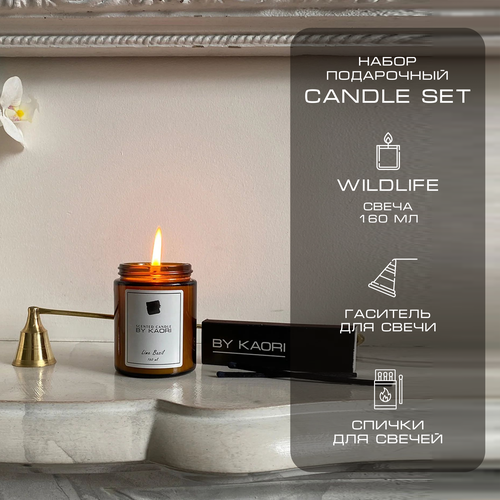 Набор подарочный BY KAORI CANDLE SET Свеча ароматическая 160 мл WILDLIFE (Дикая природа) и аксессуары
