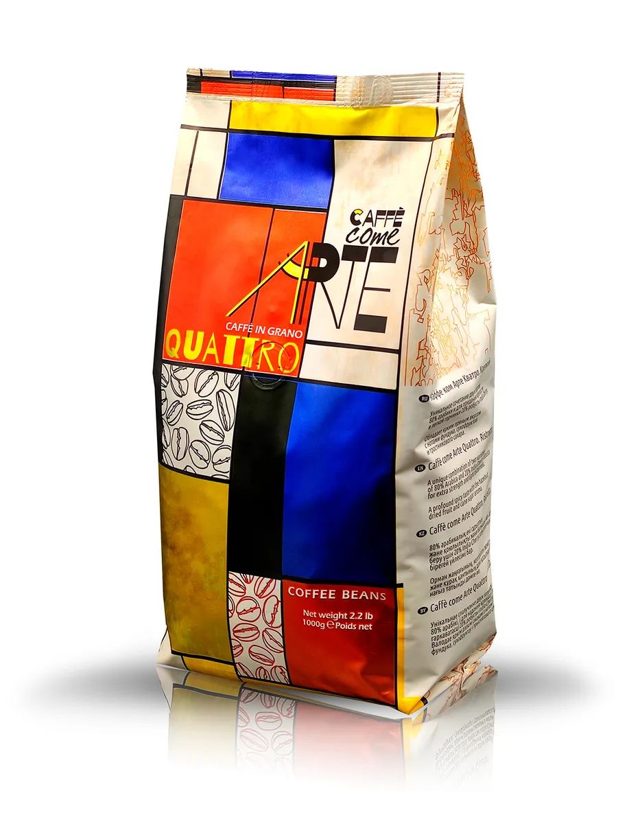 Кофе зерновой смесь арабика робуста 1 кг CAFFE COME ARTE QUATTRO натуральный кофе в зернах средняя степень обжарки