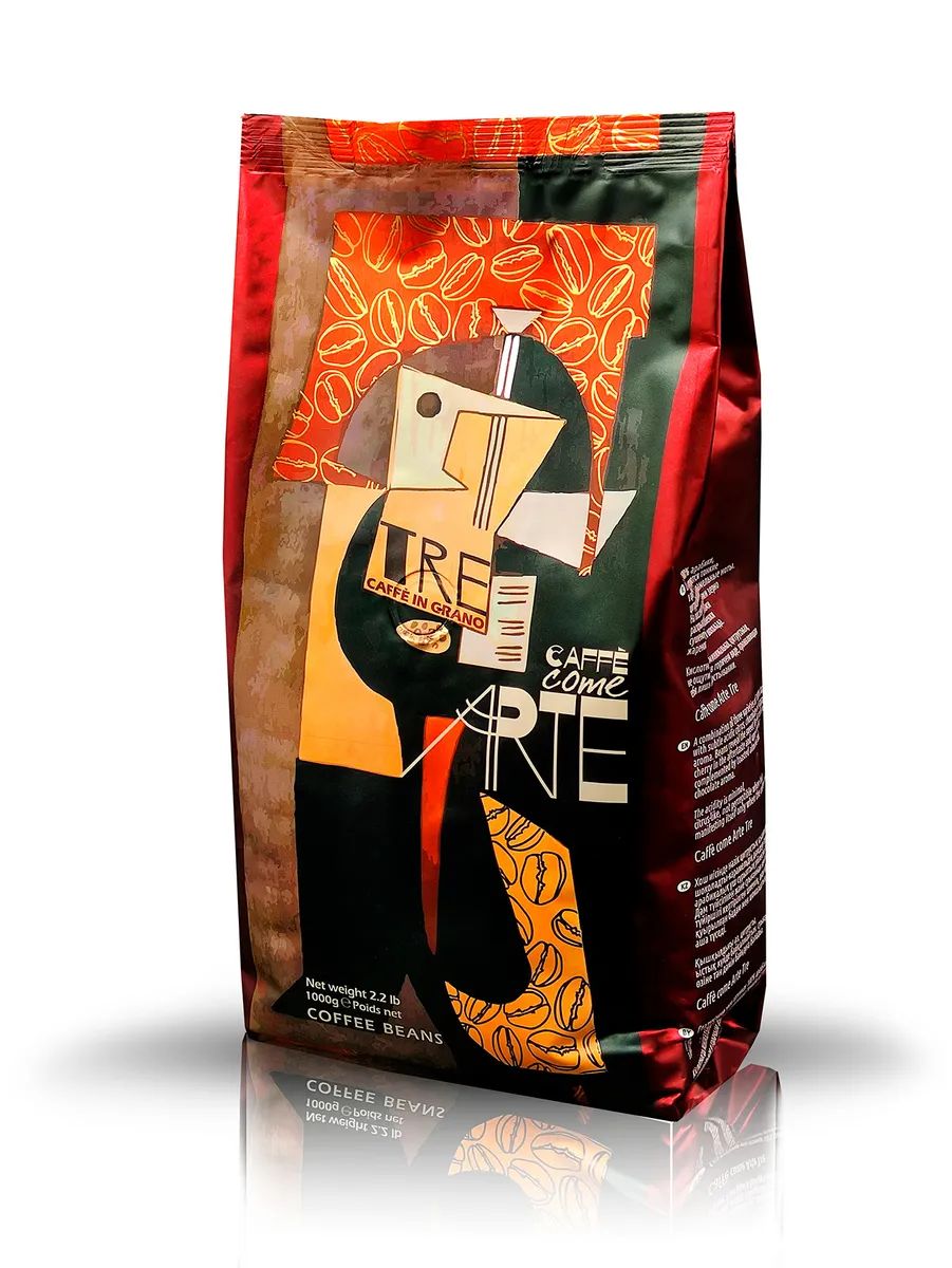 Кофе в зернах 1 кг, CAFFE COME ARTE DUE, натуральный зерновой кофе, средняя степень обжарки
