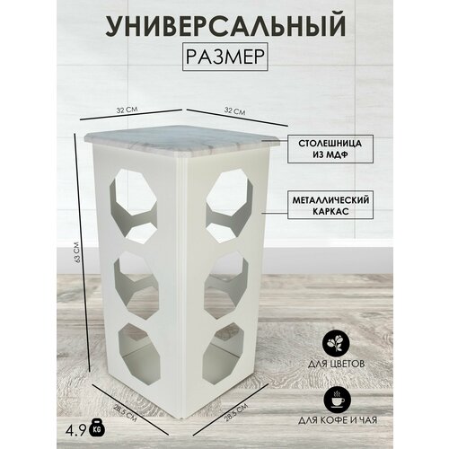 Приставной журнальный столик Callisto mobili М014.1А70 Белый мрамор