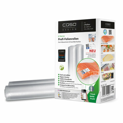 Набор рулонов для вакуумного упаковщика CASO VC 20х600 см,150 мкм, 2 шт, полимер