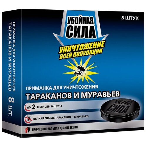 Приманка Убойная сила для тараканов и муравьев Унижение всей популяции, 60 г, 4000 мл, 8 шт.