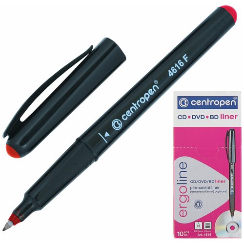 Маркер для CD и DVD красный CENTROPEN, трехгранная форма захвата, тонкий, 0,6 мм, 4616, 6 4616 0104 Комплект : 10 шт.