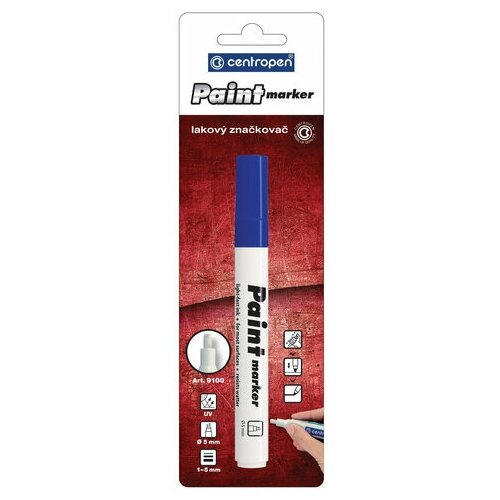 Маркер-краска Centropen "Paint Marker 9100", синяя, клиновидный, 5 мм, лаковый, блистер