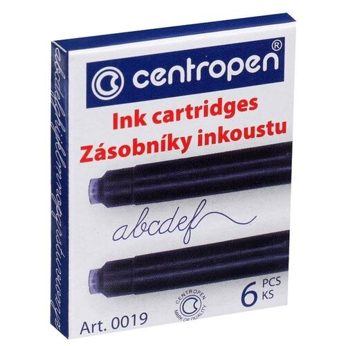 Картриджи чернильные синие CENTROPEN, комплект 6 шт, 0019/6, 1 0019 0601, 143686