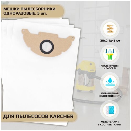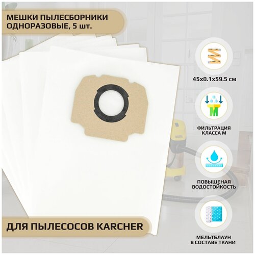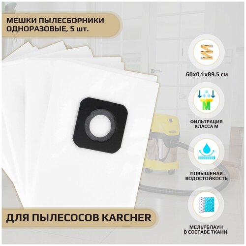 Мешки для пылесоса CET К1 (5) к KARCHER WD 2, МV 2, WD 2.200, одноразовые синтетические, 5 шт.