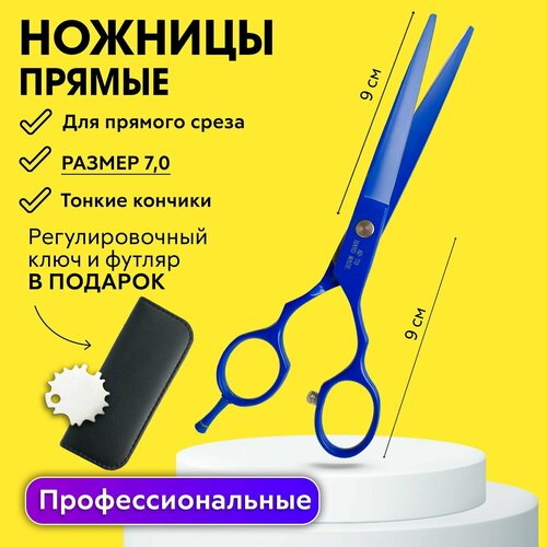 CHARITES / Ножницы парикмахерские профессиональные прямые для стрижки волос универсальные 7.0 синие + Регулировочный ключ, футляр В подарок!