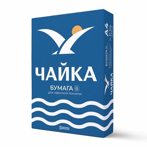 Бумага офисная А4, 80 г/м2, 500 л., марка А, ЧАЙКА, Россия, 168% (CIE) 100054022816
