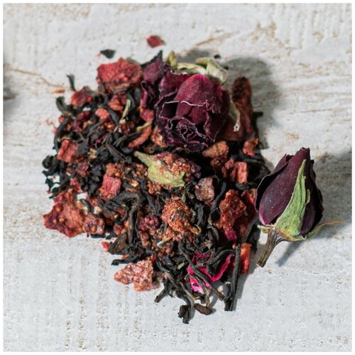 Черный чай без ароматизаторов "Клубника-роза", упаковка 100 гр.
